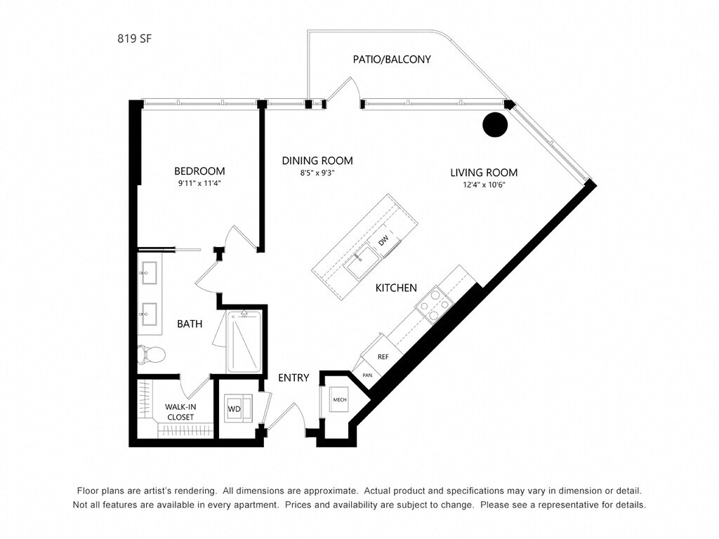Apartment Model: 1 Bedroom BCall For Rates1 Bedroom, 1 Bath, 819 sq ftUnavailableFloor plans are artist's rendering. All dimensions are approximate. Actual product and specifications may vary in dimension or detail. Not all features are available in every rental home. Prices and availability are subject to change. Base rent is based on monthly frequency. Additional fees may apply, such as but not limited to package delivery, trash, water, amenities, etc. Deposits vary. Please see a representative for details.