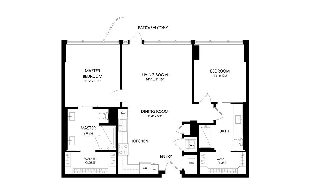 2 Bedroom B - Floorplan 4 Apartment Unit: 1109Apartment Model: 2 Bedroom B$6,2782 Bedroom, 2 Bath, 1261 sq ftAvailable November 24, 20252 Bedroom A