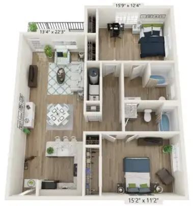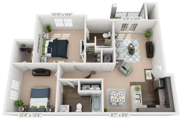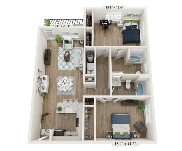2 Beds, 2 Baths, 1190 sq ftLargest 2 BedroomThis is the largest 2 Bedroom at this PropertyModel Gallery