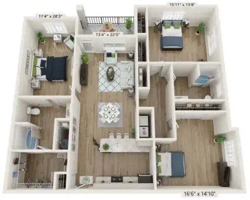 Apartment Model: The Davidson$1,8853 Bedroom, 2 Bath, 1531 sq ftAvailable Now![]()