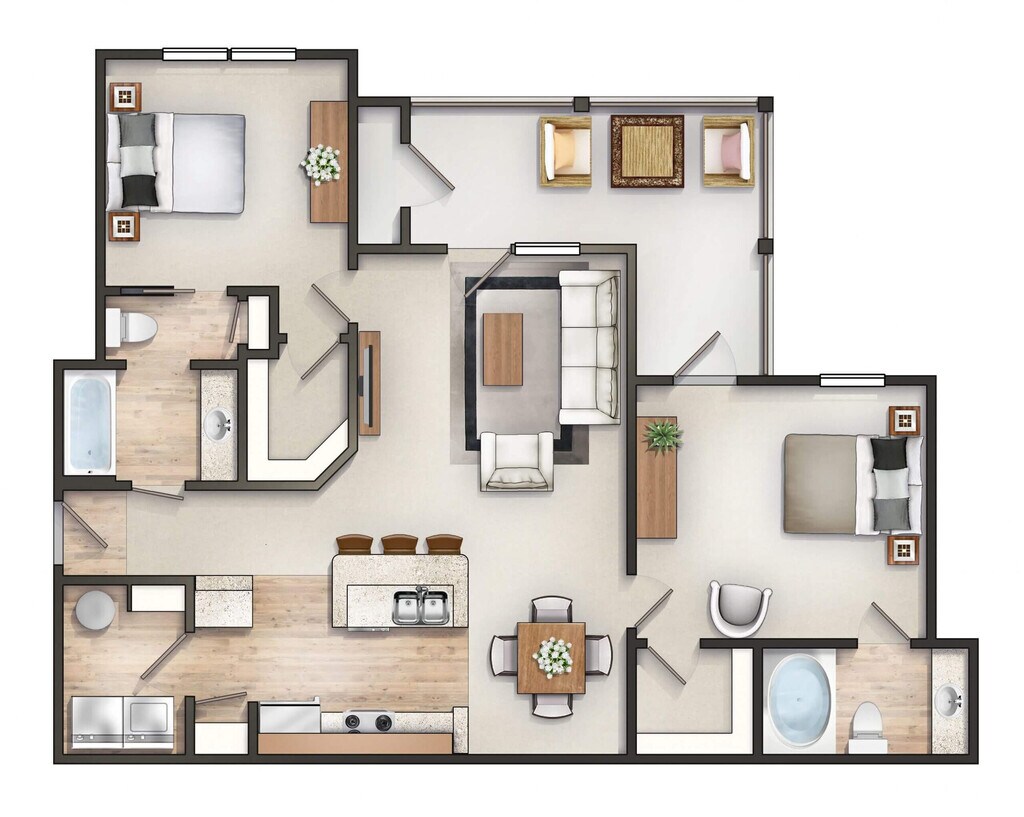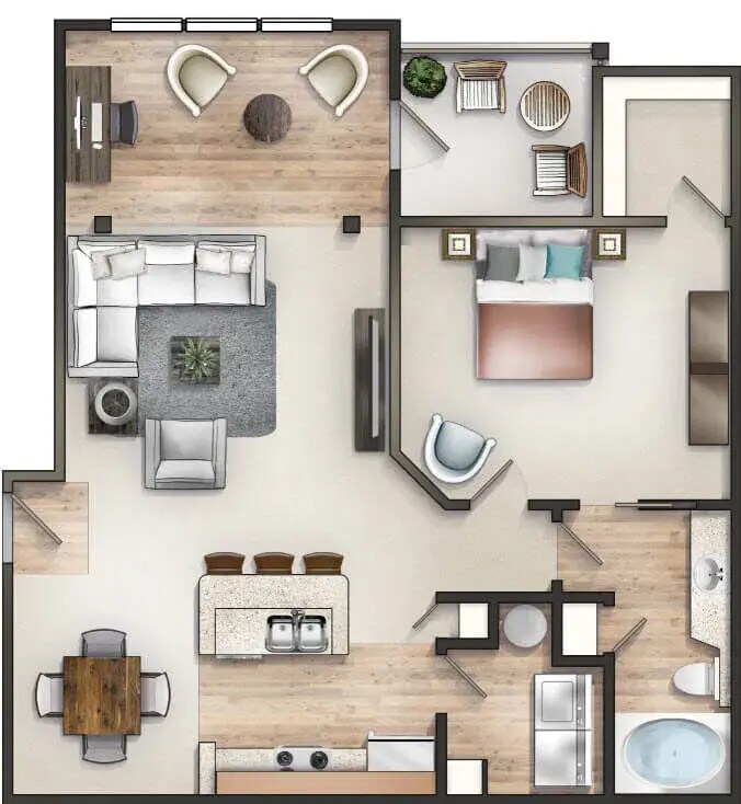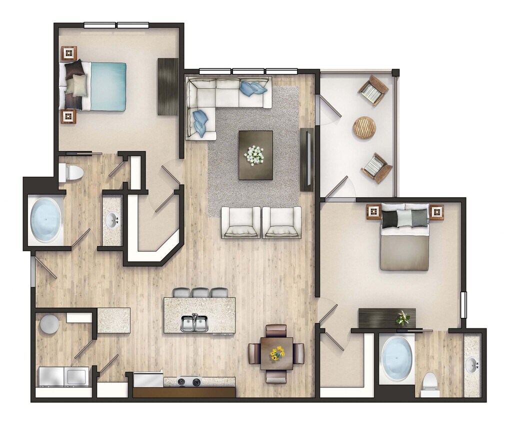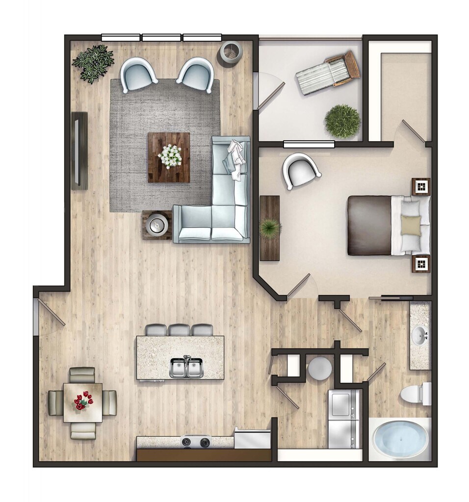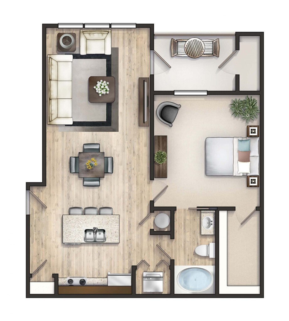 1 Bed, 1 Bath, 907 sq ftAvailable NowModel Gallery