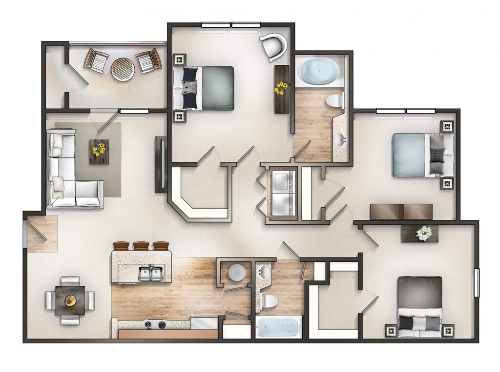 The Upper Flat Rock with Balcony - Floorplan 2 Apartment Unit: 21109Apartment Model: The Upper Flat Rock with Balcony$1,4551 Bedroom, 1 Bath, 907 sq ftAvailable NowThe Upper Poinsett with Great Room and Balcony