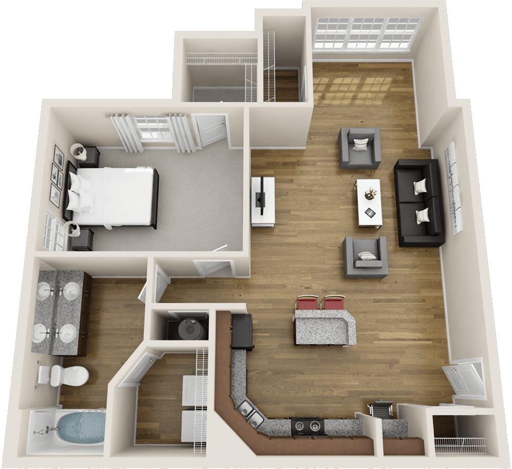 1 Bed, 1 Bath, 917 sq ftAvailable NowModel Gallery