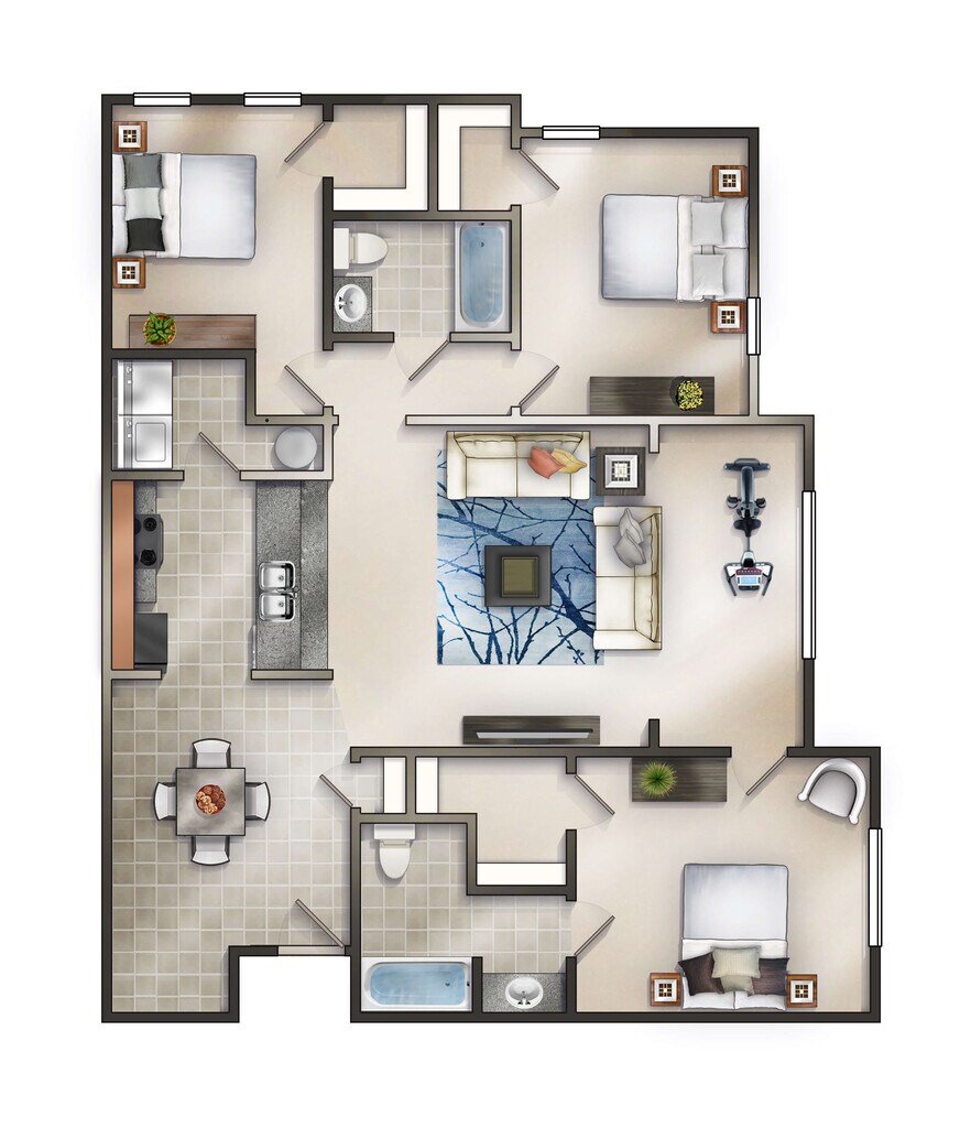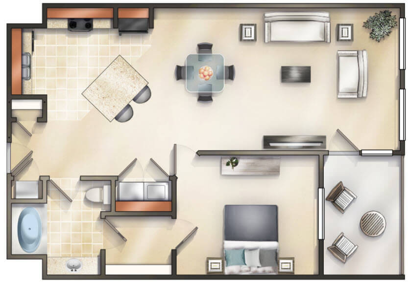 1 Bed, 1 Bath, 831 sq ftAvailable NowModel Gallery
