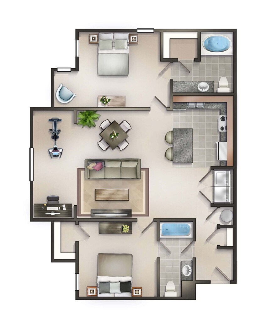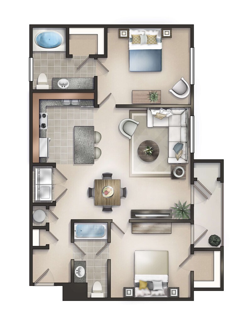2 Beds, 2 Baths, 983 sq ftAvailable NowModel Gallery