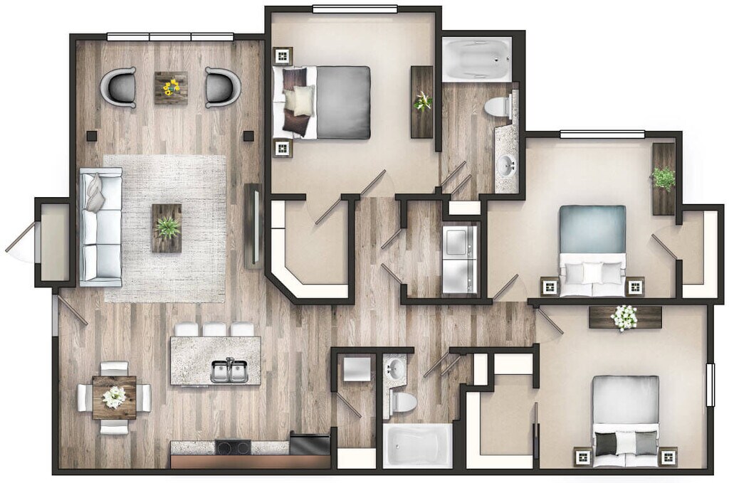 1 Bed, 1 Bath, 907 sq ftModel Gallery