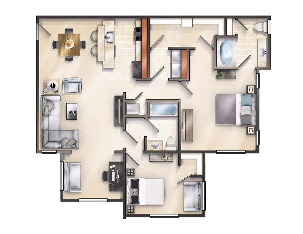 2 Beds, 2 Baths, 1102 sq ftAvailable NowModel Gallery