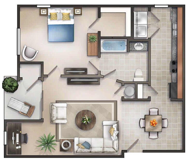 1 Bed, 1 Bath, 841 sq ftAvailable NowModel Gallery