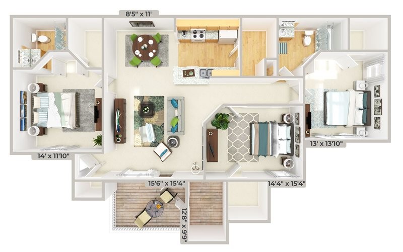 3 Beds, 2 Baths, 1343 sq ftModel Gallery