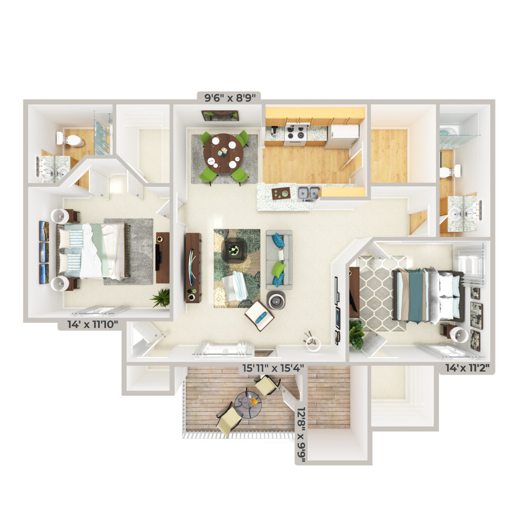 2 Beds, 2 Baths, 1109 sq ftAvailable NowModel Gallery