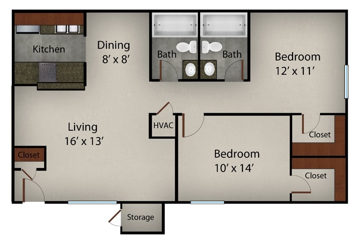 2 Beds, 2 Baths, 1100 sq ftAvailable NowLargest 2 BedroomThis is the largest 2 Bedroom at this PropertyModel Gallery