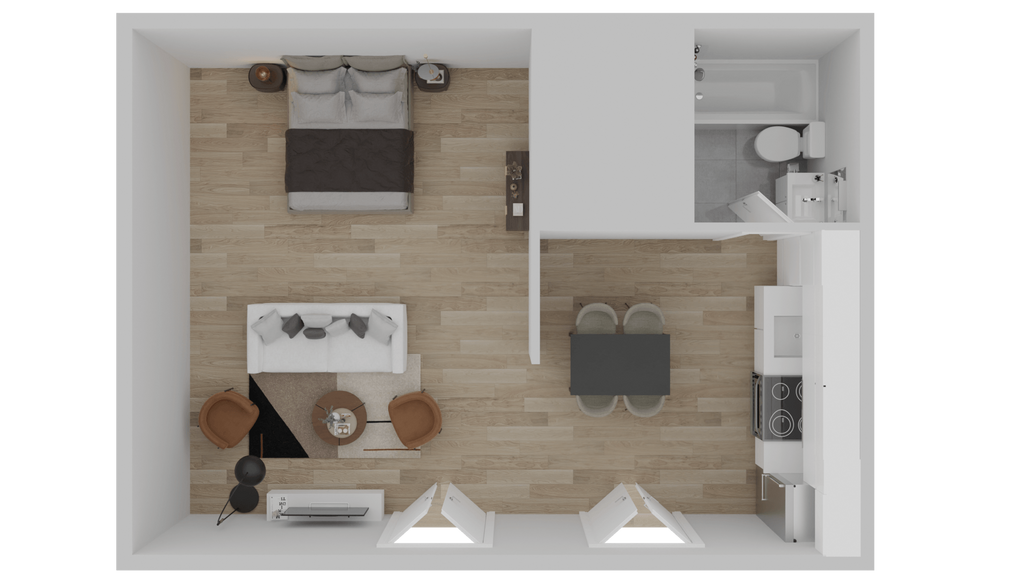 1 Bed, 1 Bath, 400 sq ftModel Gallery