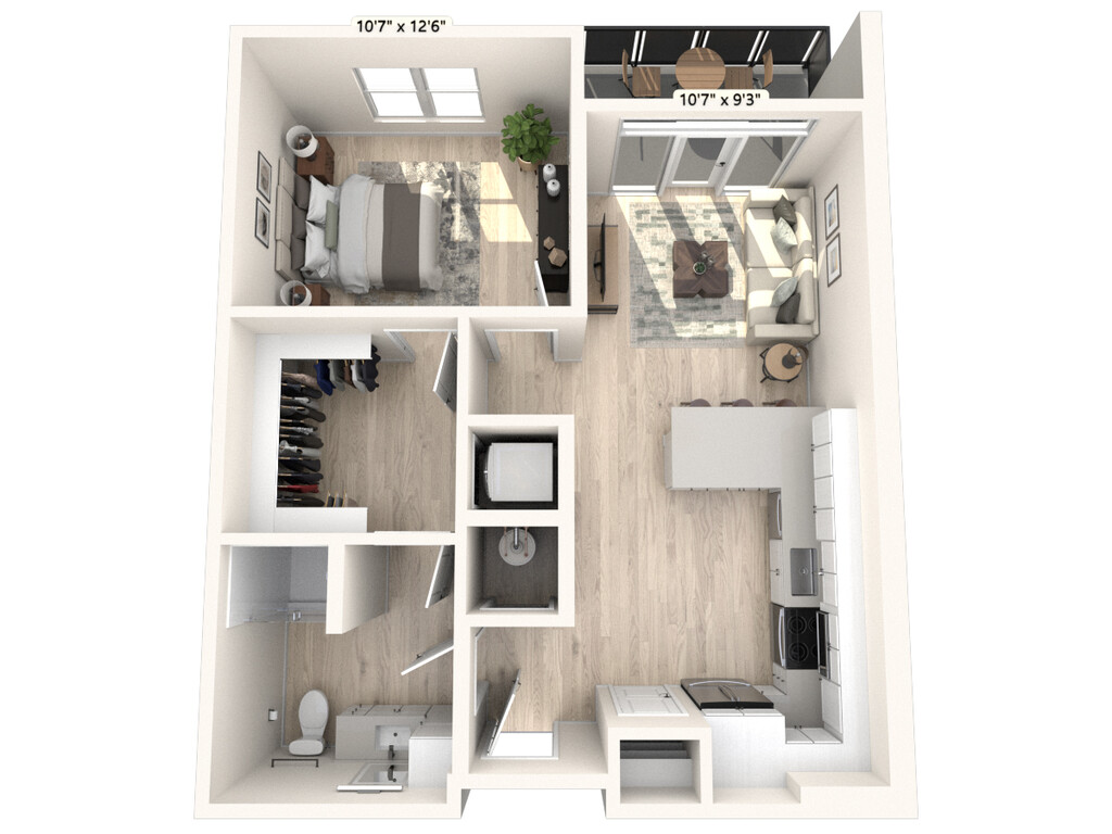 Apartment Model: A1dFrom $1,2031 Bedroom, 1 Bath, 719 sq ftAvailable January 18, 2026![]() - A1d - Floorplan 1 Apartment Unit: 351Apartment Model: A1d$1,2031 Bedroom, 1 Bath, 719 sq ftAvailable January 18, 2026