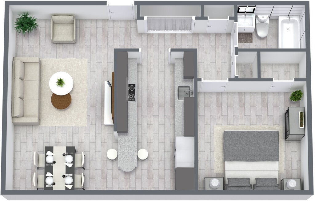 One bed - Floorplan 7 Apartment Unit: 109Apartment Model: One bed$1,3991 Bedroom, 1 Bath, 850 sq ftAvailable Now