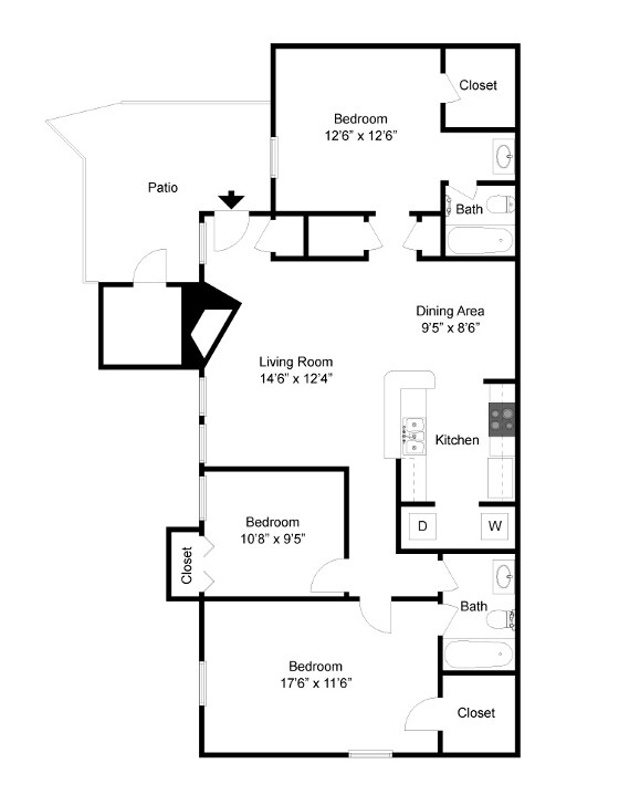 Apartment Model: The Hampton3 Bedroom, 2 Bath, 1162 sq ftAvailable Now![]()