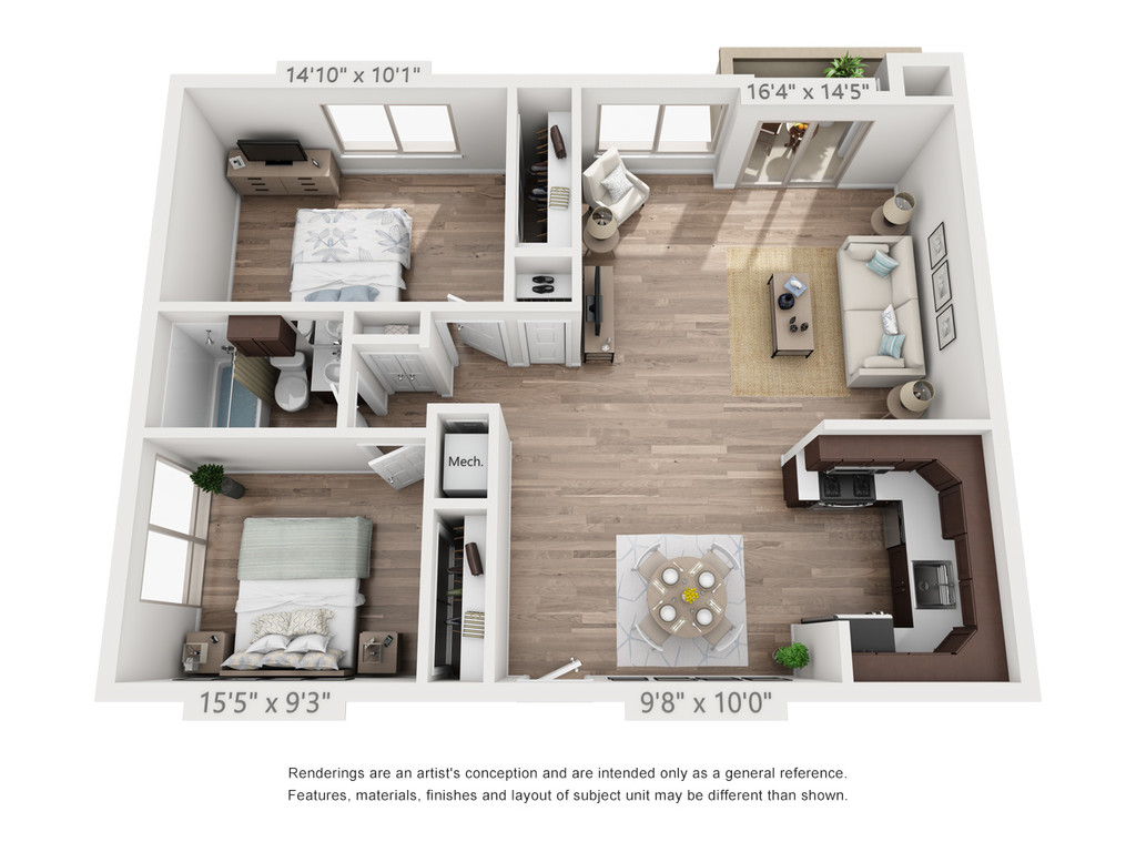 2 Beds, 1 Bath, 910 sq ftAvailable NowModel Gallery
