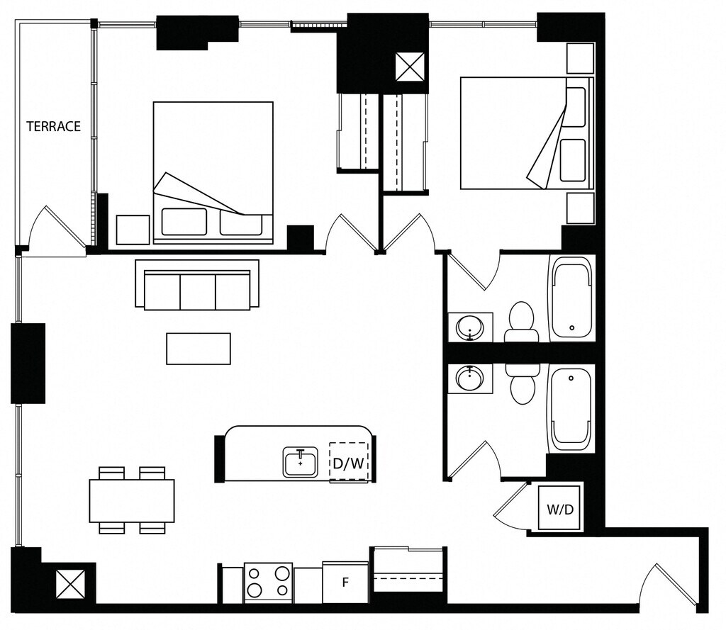 Apartment Model: 1 Bedroom 1 BathFrom $2,1001 Bedroom, 1 Bath, 544-649 sq ftAvailable Now![]()
