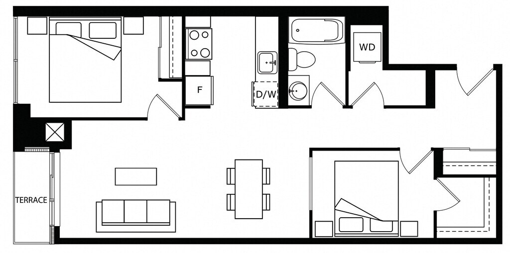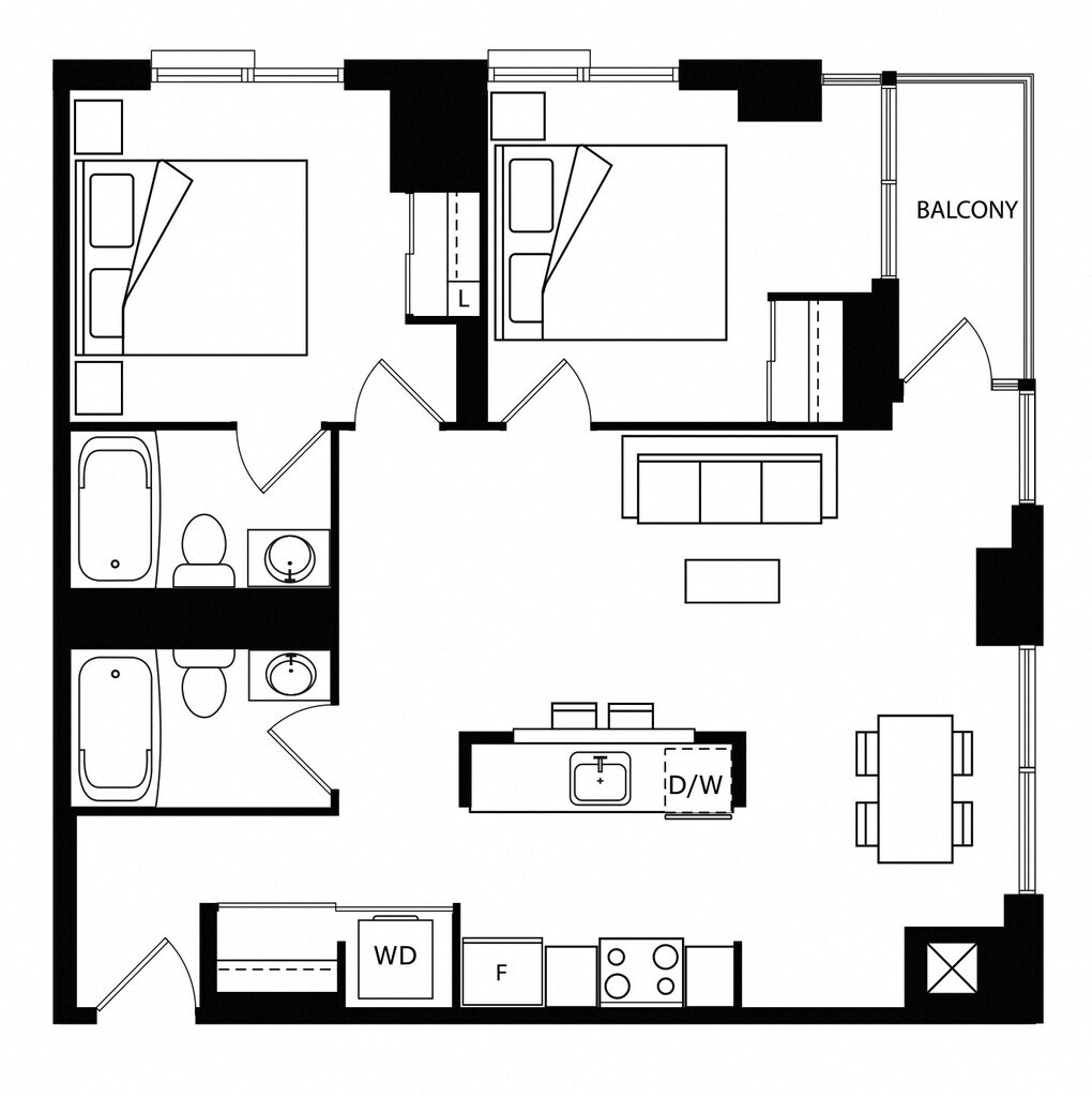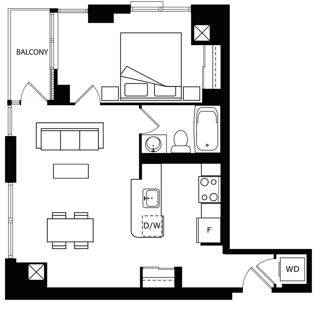 1 Bedroom 1 Bath - Floorplan 7 Apartment Unit: 0804Apartment Model: 1 Bedroom 1 Bath$2,1001 Bedroom, 1 Bath, 591 sq ftAvailable Now![]()