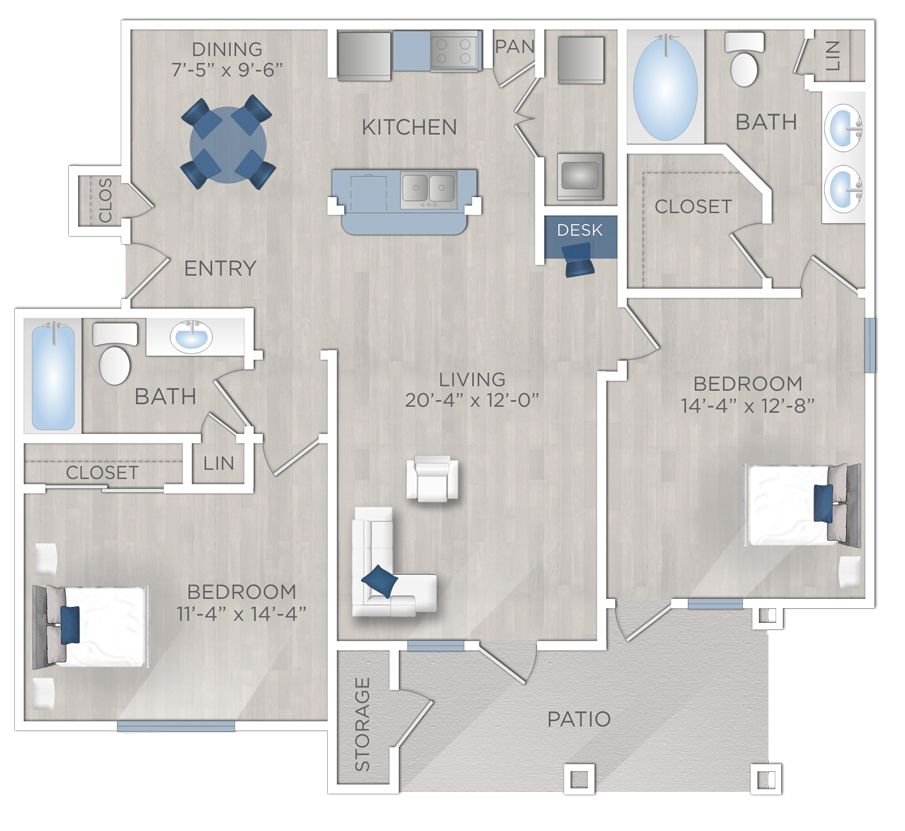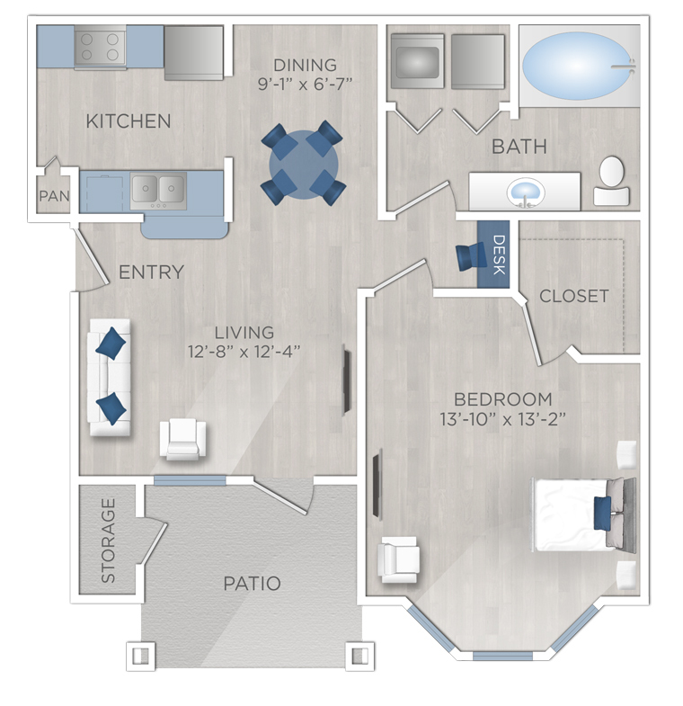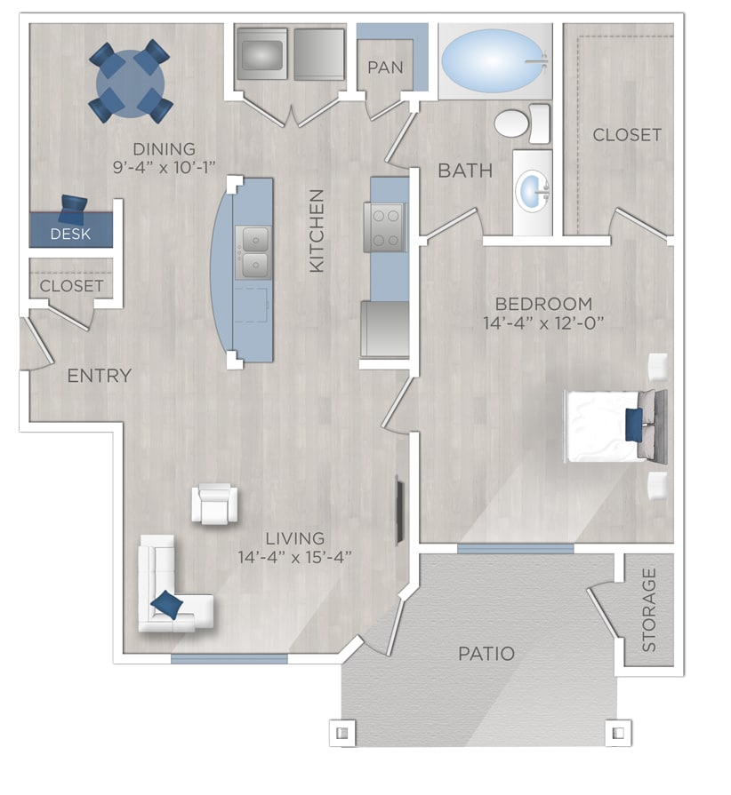 1 Bed, 1 Bath, 737 sq ftAvailable NowModel Gallery