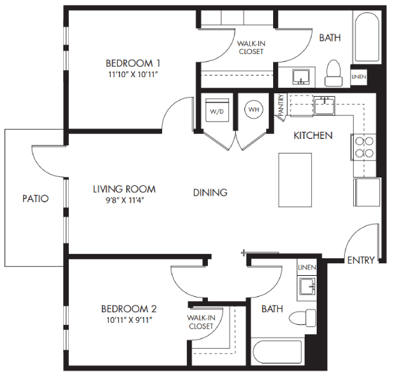 2 Beds, 2 Baths, 972 sq ftTotal Monthly PriceAvailable Dec 13Model Gallery