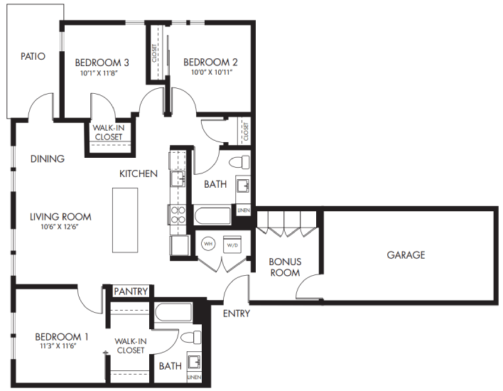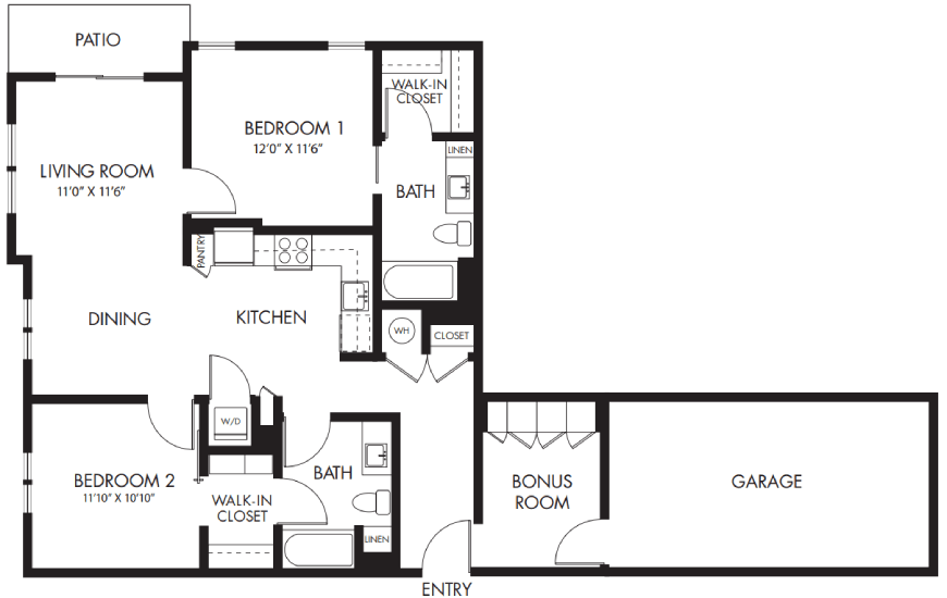 A5 Carriage + Garage - Floorplan 3 Apartment Unit: 2183Apartment Model: A5 Carriage + Garage1 Bedroom, 1 Bath, 807 sq ftAvailable November 22, 20252 Bedrooms