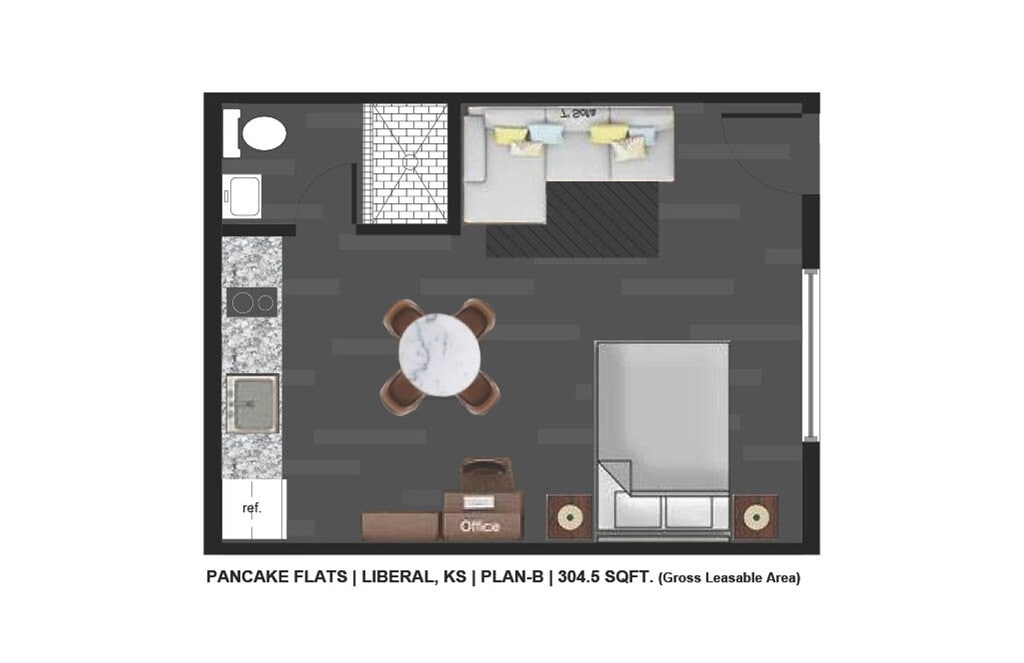 Pancake Flats in Liberal offers Studio apartments starting from $599 and having 244–305 sq ft. Here is the current pricing and availability: