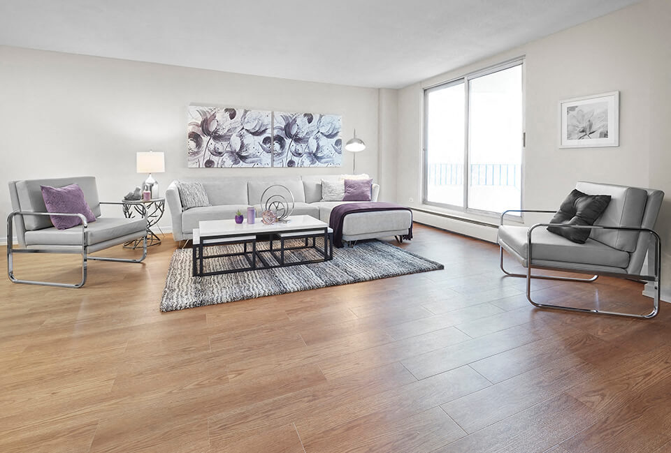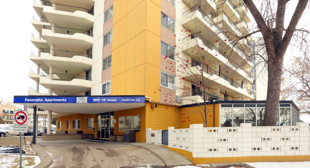 Panorama Apartments 100th Avenue & 115th Street: Walk down the beautiful treed canopy to the front doors of Panorama and feel refreshed. Realstar's Panorama Apartments in the sought-after Oliver neighbourhood will make you feel right at home. Our renovated and non-renovated smoke-free suites in this 16 story high-rise provide residents with some of the best balconies and views of the river valley and downtown in Edmonton. We have the perfect suite for you, come visit us and see for yourself. Our location Panorama Apartments is located in the downtown community of Oliver, walking distance to Oliver Square, The Brewery District, Jasper Avenue and all the entertainment venues that a vibrant city offers. The neighbourhood is filled with amenities including Oliver Park and arena,The Promenade Boulevard, The Victoria Golf Course, Loblaws City Market, Safeway, Winners and Goodlife Fitness. Numerous restaurants and pubs such as The Cactus Club, On The Rocks and Urban Tavern are must visit sites in the neighbourhood. Bus service is right outside our door and LRT service via The Grandin Station is only a few blocks away. Easy access to the west end of the city and the Edmonton International Airport is a 30 minute drive from downtown. Our suites Make you new home in a generously sized, open concept bachelor, one, two or three bedroom apartment. Each renovated suite features a dishwasher and over the range microwave, in-suite storage, luxury vinyl plank flooring, window coverings and your own private balcony. We also offer standard suites (dishwashers but no over the range microwaves) to fit a more modest budget where we put in the same love and attention that we would to our renovated suites. A large number of our suites have huge 250 square foot balconies like you have never seen before! We have the perfect suite for your lifestyle.