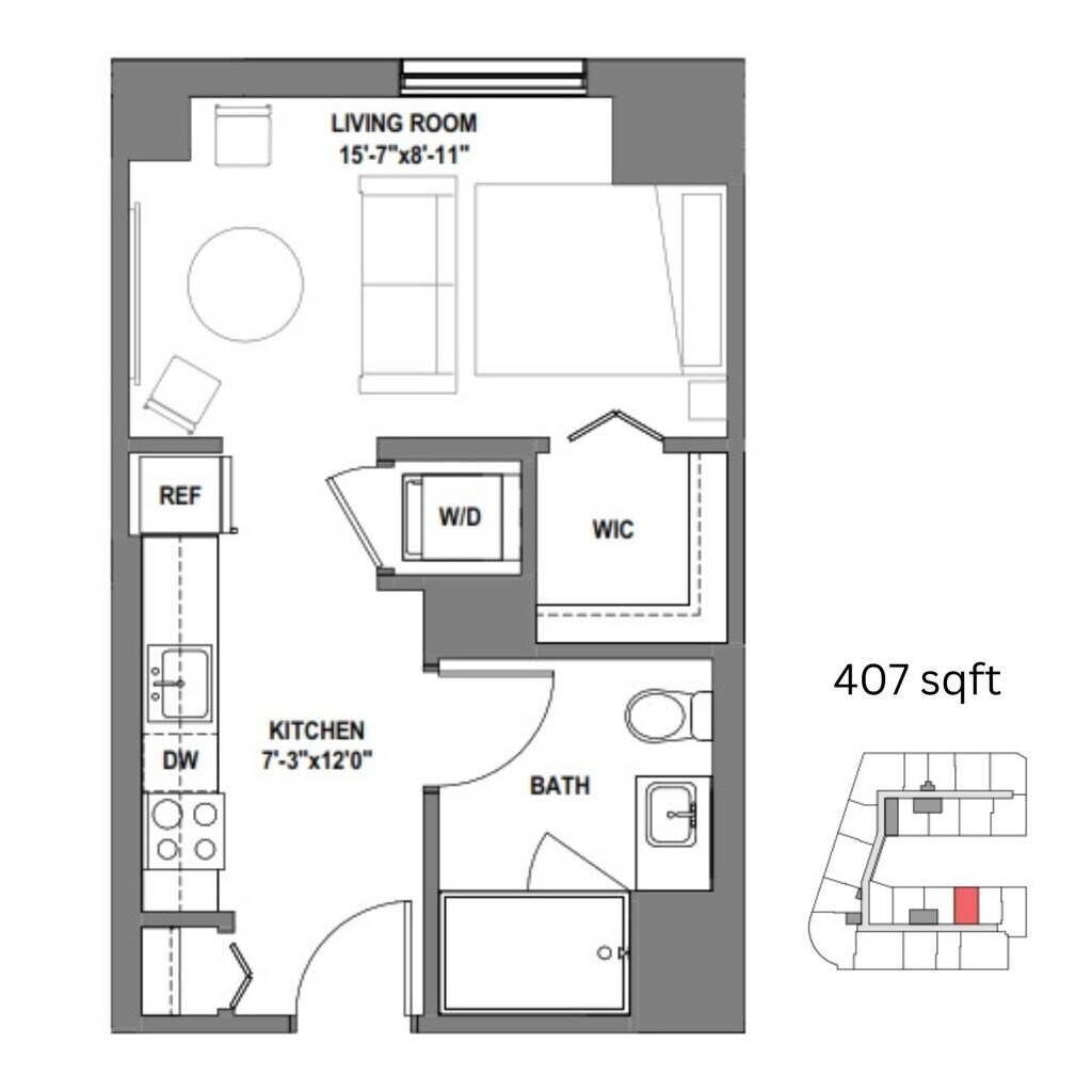 Studio, 1 Bath, 407-433 sq ftTotal Monthly PriceAvailable Jul 20Total Monthly Price