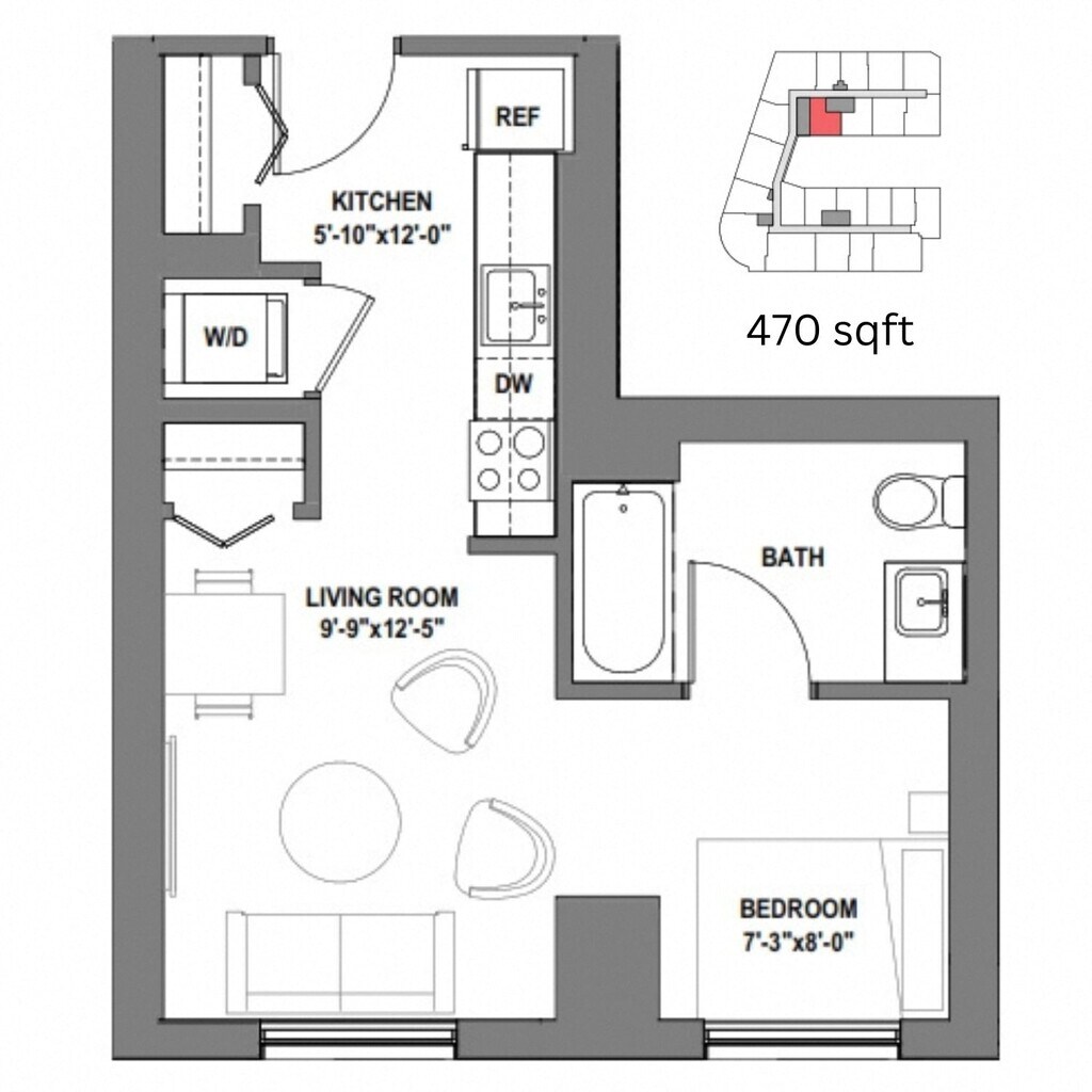 Studio, 1 Bath, 470 sq ftModel Gallery