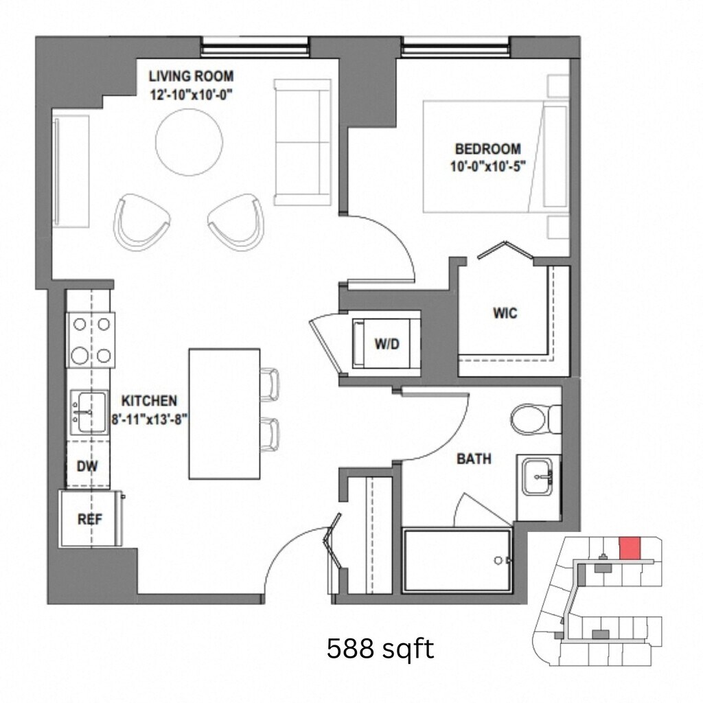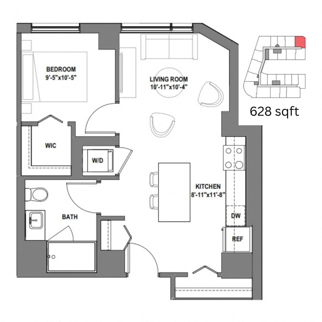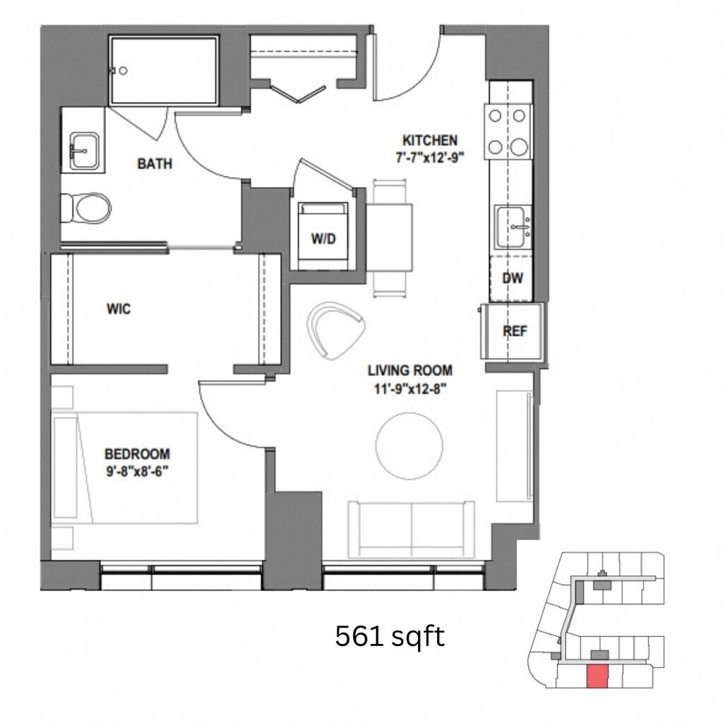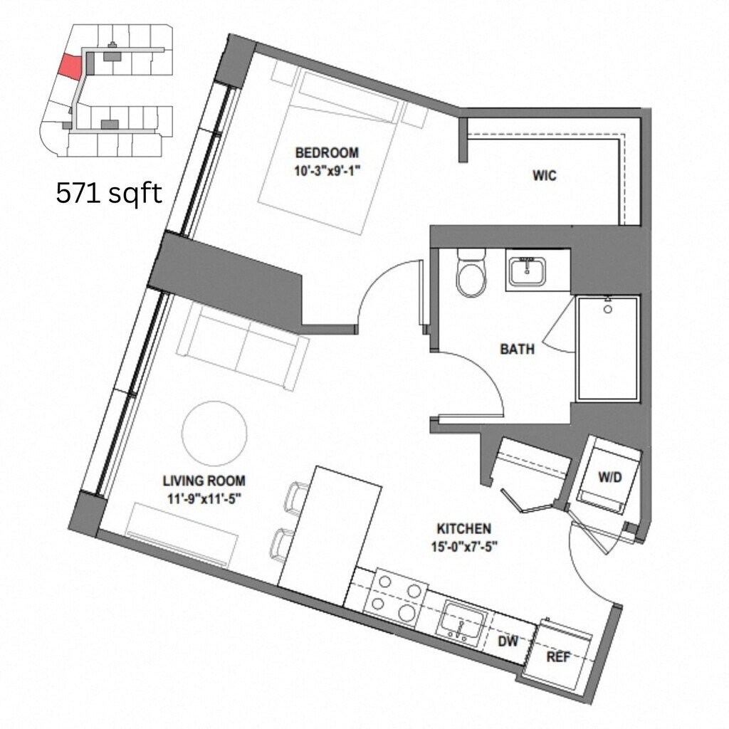 1 Bed, 1 Bath, 563-571 sq ftModel Gallery