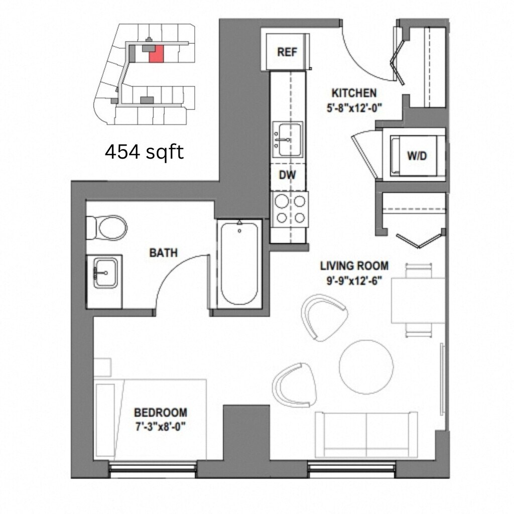 Apartment Model: ConvertibleFrom $2,074Studio, 1 Bath, 454 sq ftAvailable June 20, 2026Floor plans are artist's rendering. All dimensions are approximate. Actual product and specifications may vary in dimension or detail. Not all features are available in every rental home. Please see a representative for details.