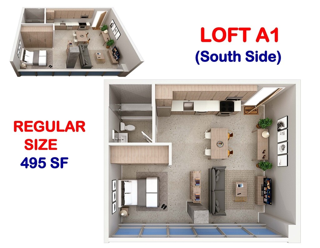 Apartment Model: Studio Loft A1 (South Side)From $1,750Studio, 1 Bath, 495 sq ftAvailable Now![]()