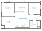 3 Beds, 1 Bath, 630-700 sq ftLargest 3 BedroomThis is the largest 3 Bedroom at this PropertyModel Gallery