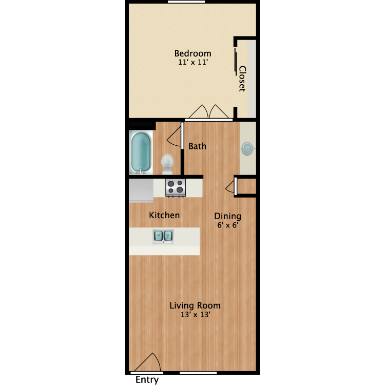 Apartment Model: 1X1S$1,1501 Bedroom, 1 Bath, 614 sq ftAvailable Now![]()