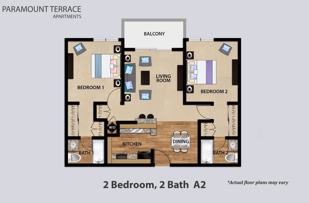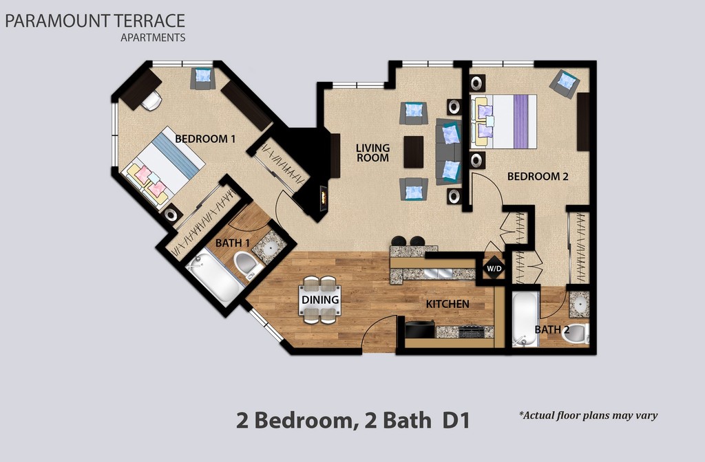 2 Beds, 1 Bath, 900 sq ftModel Gallery