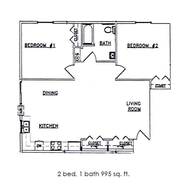 2 Bed 1 Bath | 850 sqft - Floorplan 1 2 Bed 1 Bath | 995 sqft