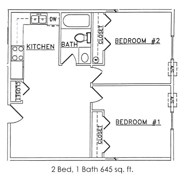 2 Bed 1 Bath | 645 sqft - Floorplan 1 2 Bed 1 Bath | 780 sqft