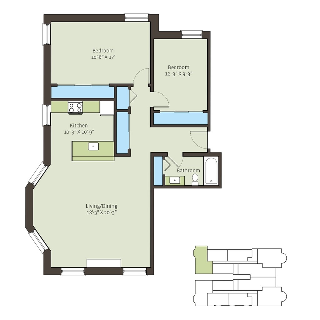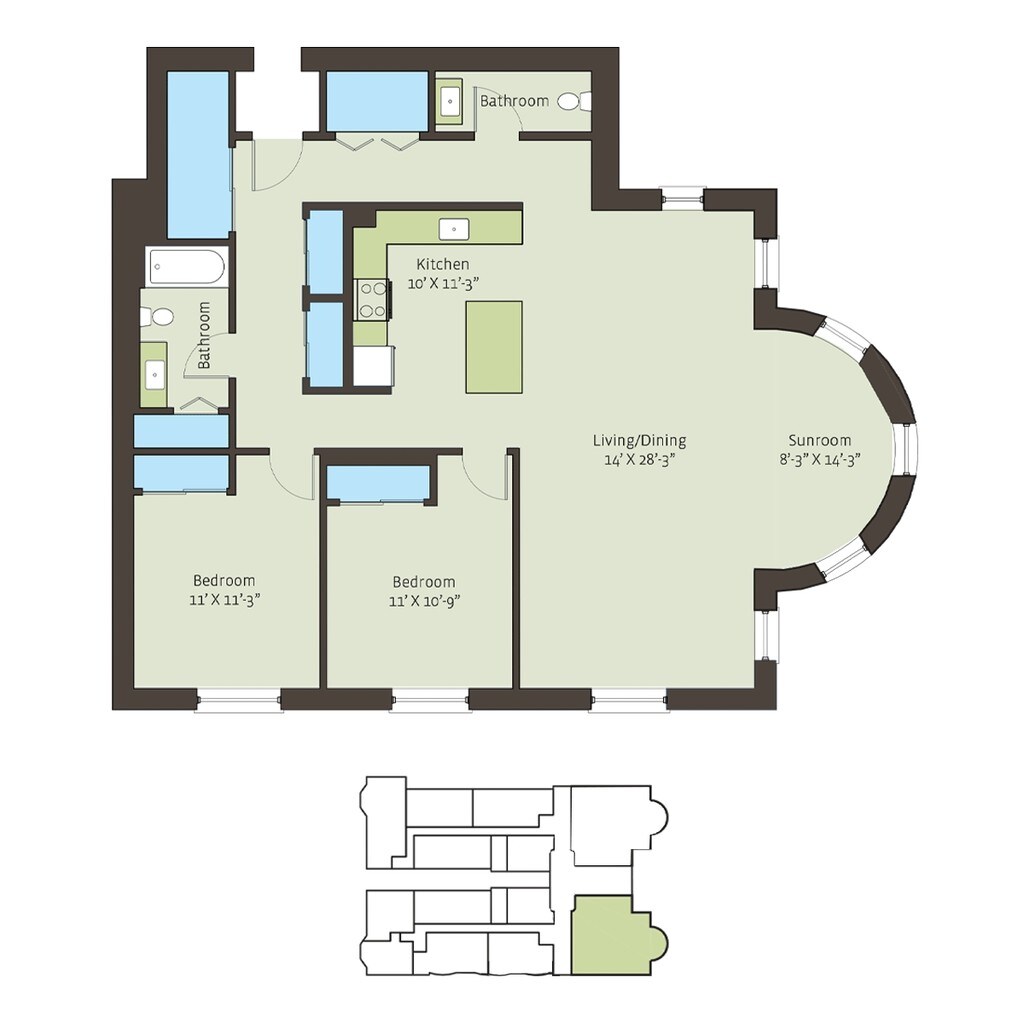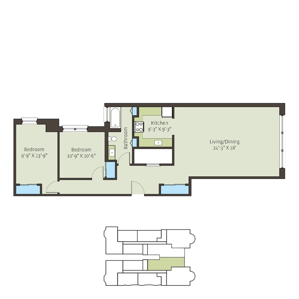 2 Beds, 1 Bath, 1425 sq ftLargest 2 BedroomThis is the largest 2 Bedroom at this PropertyModel Gallery