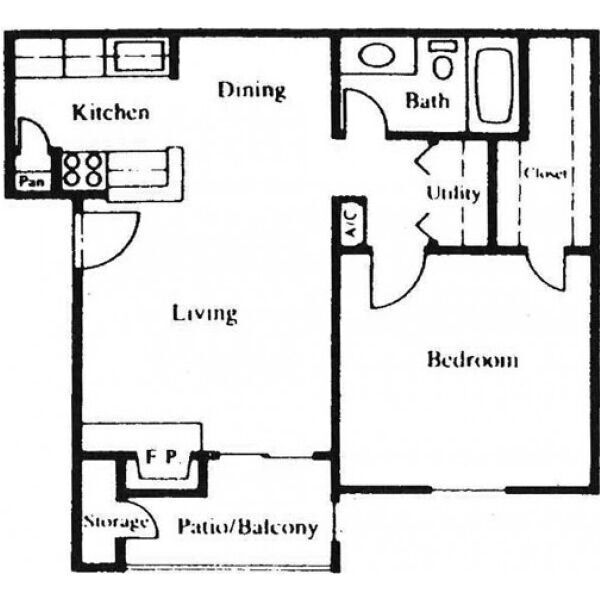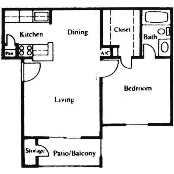Apartment Model: A 1x1From $9251 Bedroom, 1 Bath, 600 sq ftAvailable NowFloorplansPhotos![]()