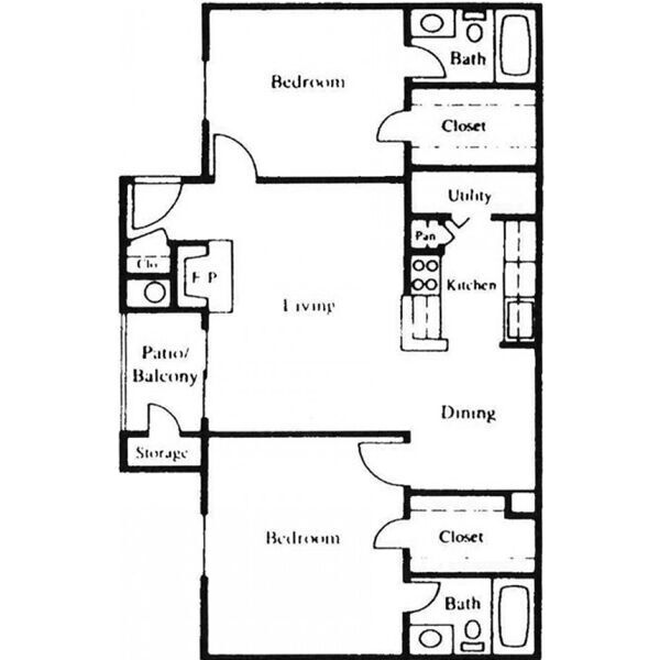 Apartment Model: E 2x2$1,2352 Bedroom, 2 Bath, 945 sq ftAvailable December 7, 2025FloorplansPhotos![]()