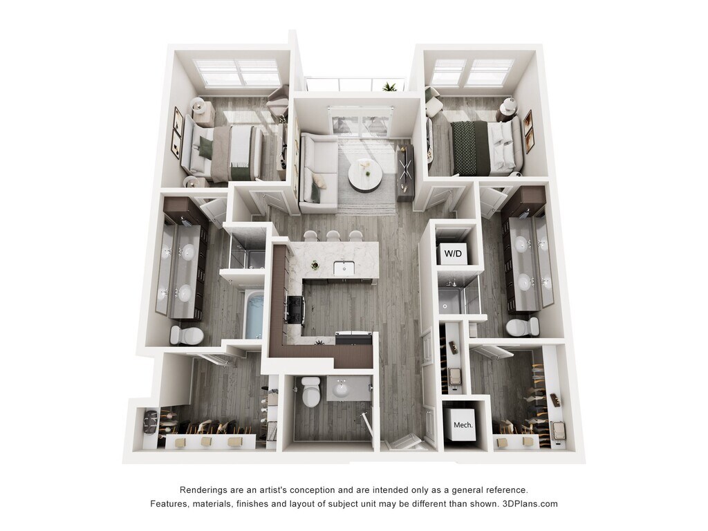 - Expansive walk-in closets with thoughtful design
