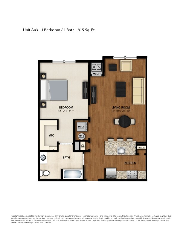 Apartment Model: AA3From $2,4801 Bedroom, 1 Bath, 815 sq ftAvailable NowFloor plans are artist's rendering. All dimensions are approximate. Actual product and specifications may vary in dimension or detail. Not all features are available in every rental home. Prices and availability are subject to change. Base rent is based on monthly frequency. Additional fees may apply, such as but not limited to package delivery, trash, water, amenities, etc. Deposits vary. Please see a representative for details.