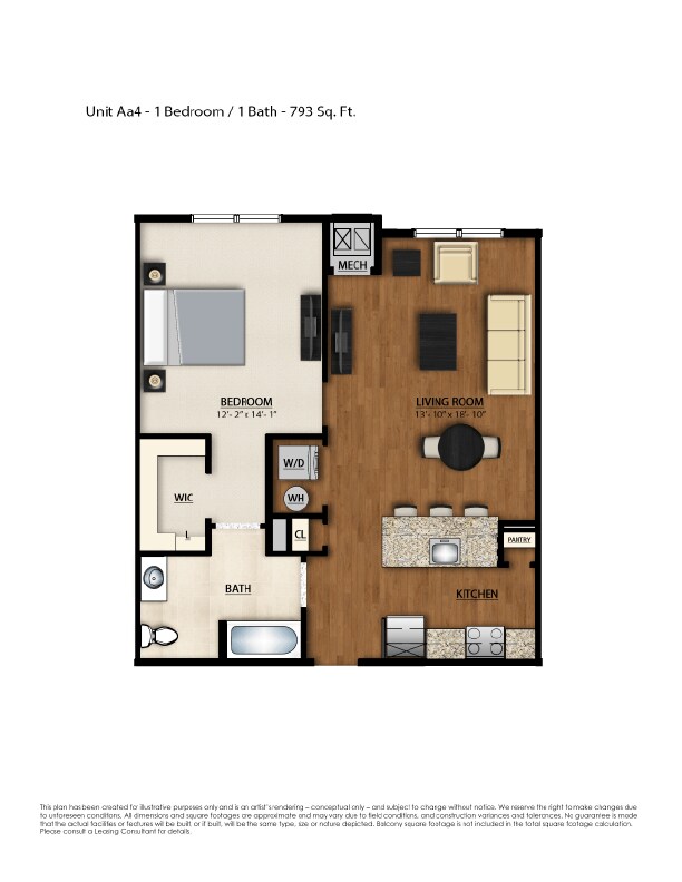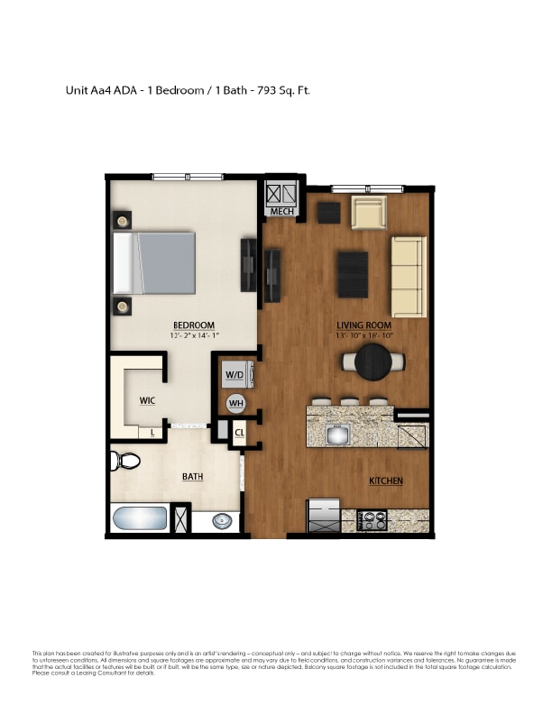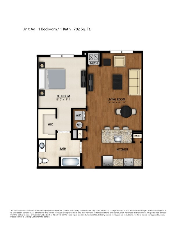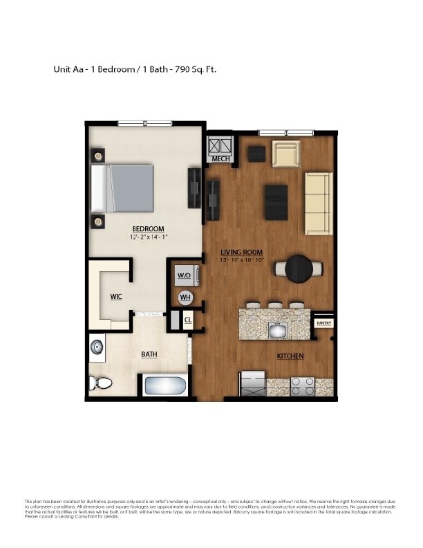 Apartment Model: AA1$2,4201 Bedroom, 1 Bath, 792 sq ftAvailable NowFloor plans are artist's rendering. All dimensions are approximate. Actual product and specifications may vary in dimension or detail. Not all features are available in every rental home. Prices and availability are subject to change. Base rent is based on monthly frequency. Additional fees may apply, such as but not limited to package delivery, trash, water, amenities, etc. Deposits vary. Please see a representative for details.