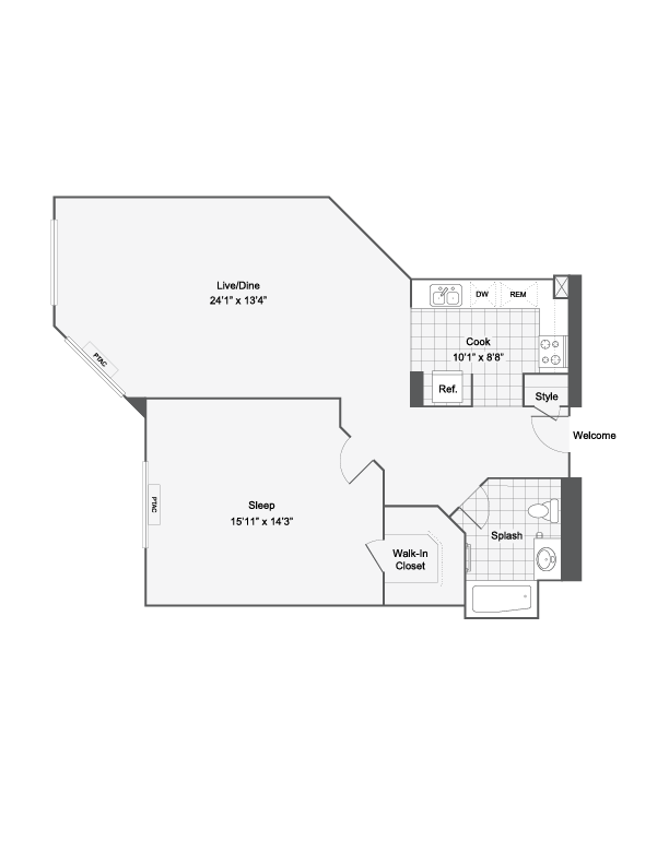 A1 - Floorplan 2 Apartment Unit: 503Apartment Model: A1$2,2241 Bedroom, 1 Bath, 680 sq ftAvailable NowFloorplan A3R