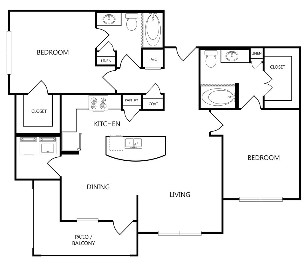 B2A - Floorplan 2 Apartment Unit: 2201Apartment Model: B2A2 Bedroom, 2 Bath, 978 sq ftAvailable NowFloorplan B2C
