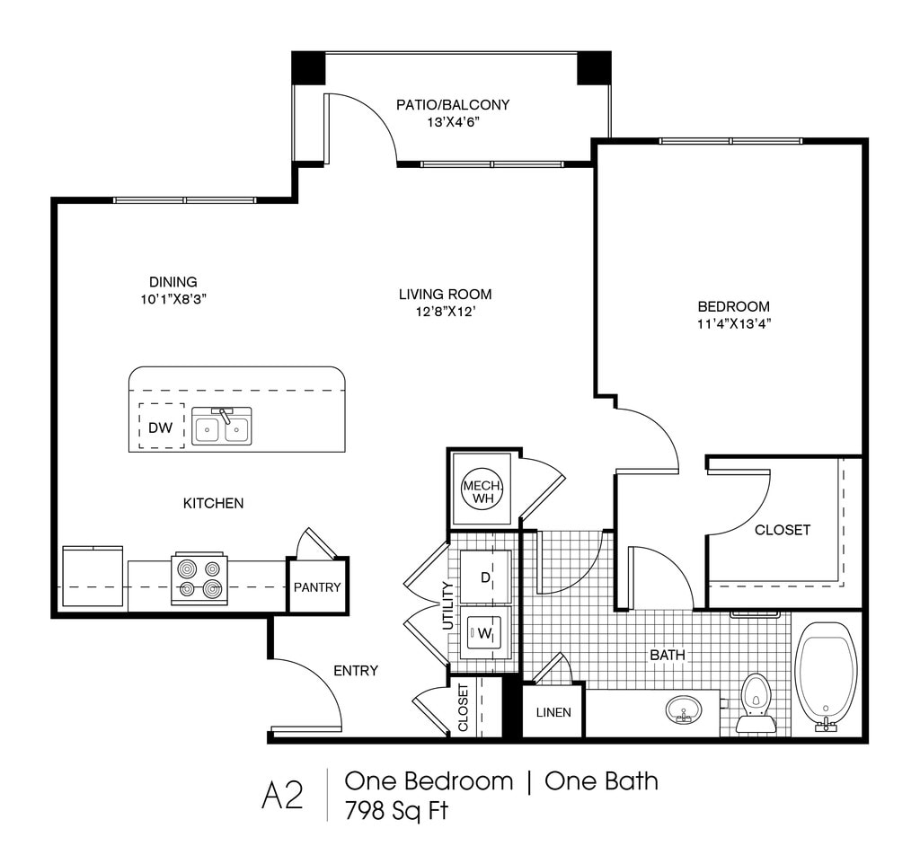 Apartment Model: A2From $1,2751 Bedroom, 1 Bath, 798 sq ftUnavailable![]()