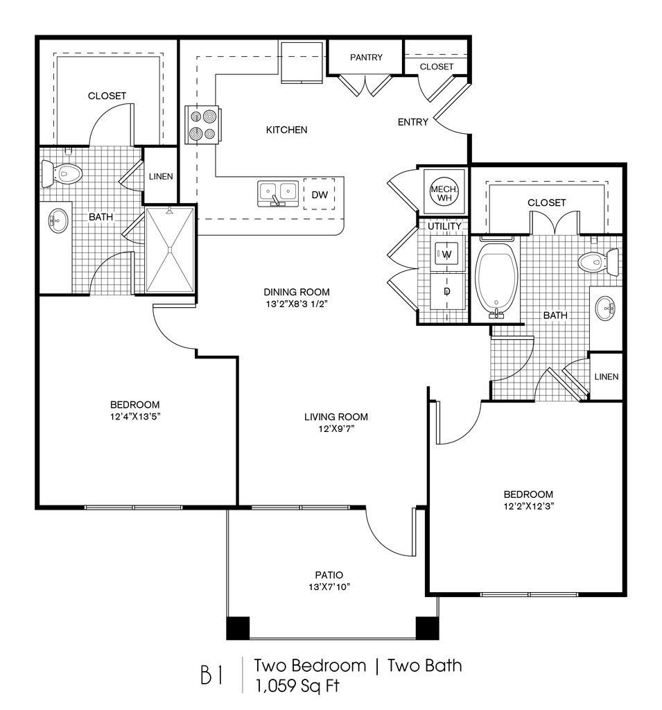 Apartment Model: B1From $1,5952 Bedroom, 2 Bath, 1059 sq ftAvailable Now![]()