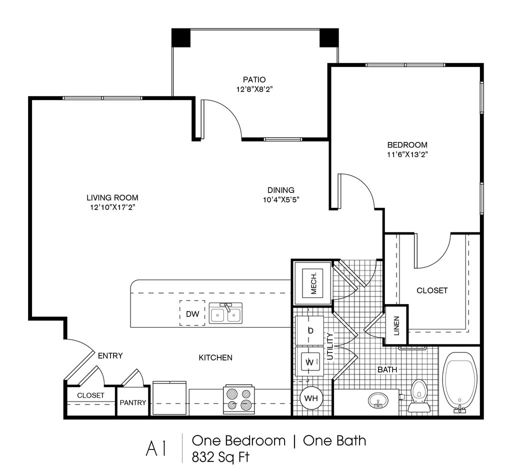 Apartment Model: A1From $1,2751 Bedroom, 1 Bath, 832 sq ftAvailable Now![]()