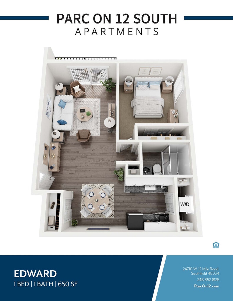 Apartment Model: Edward$9651 Bedroom, 1 Bath, 650 sq ftUnavailable![]()