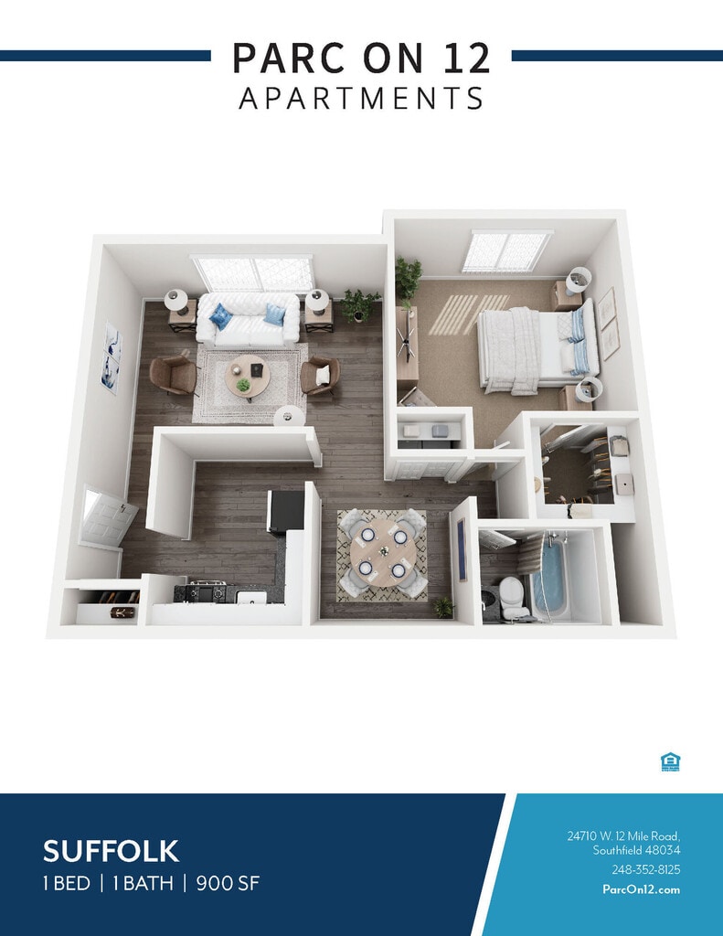 Apartment Model: Suffolk - JerseyFrom $9701 Bedroom, 1 Bath, 900-1000 sq ftAvailable Now![]()